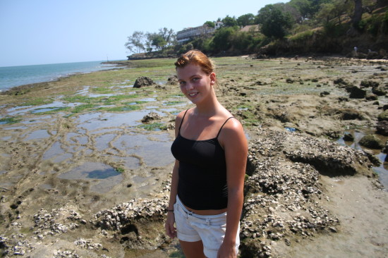 I love to swim! So I dive into the ocean and exercise a bit by swimming. Unfortunately, as soon as I leave the big crowd of local people staying in the shallow parts of the sea, some local guys start following me and ask me if they can swim along. I reply with a decent no thank you, but the guys do not go away. I start to think that it might be better to return and decide to swim my way back towards my Kenyan family who are still relaxing in the shallow part of the sea. As soon as I find them many kids and young adults start grabbing my legs and my arms. They are all amazed of my white skin tone and want to touch my skin and even my hair, because I am different. This is unpleasant, so I start pushing them away. My Kenyan mom splashes water to the people who approach me and we decide that we cannot stay here any longer. We leave the water and go for a walk. It seems that at the beach parts where only the local people come I am too much of an attraction. I know now that next time I want to go for a longer swim I need to take a local friend with me.