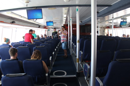 The ferry is quite comfortable, but it looks more like an airplane rather than a boat on the inside. The seats are all lined up and you should sit down during the voyage.