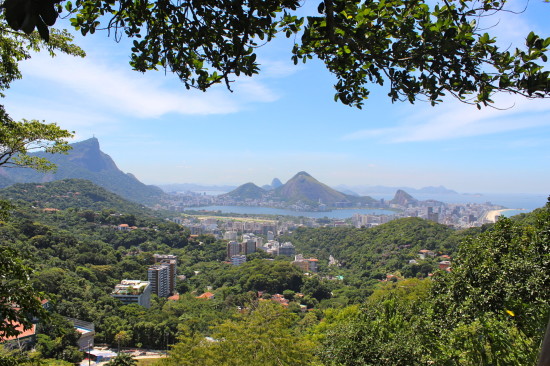 A tree gives a lot of shade and the Corcovado statue (which literally means the back of a camel) together with the Ipanema beach (which apparently means disgusting smell?!) are in my panoramic view.