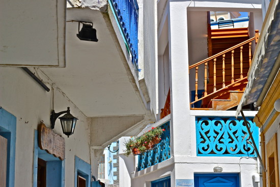 The streets of Olympos are lovely to walk through and it gives a certain feeling of peace. Perhaps it’s because it’s quite old, but it surely has to do with the narrow streets and the cute little houses. Most houses are painted blue and white after the Greek colors, but there are also plenty of yellow colors to be found, which is the typical color of a house on Karpathos.