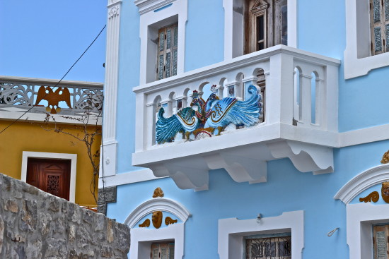 Interesting how the peacocks at the balcony must refer to the Greek Orthodox Church (normally a symbol with eagles like in the back of the picture)