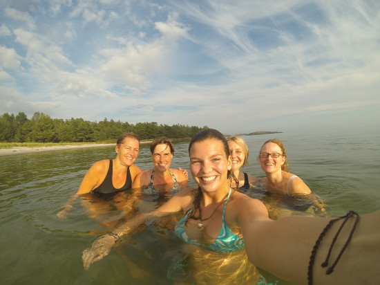 Upon arrival at the beach I am totally stunned by the beauty of it. I have to go for a swim in this crystal clear water. It’s probably quite cold, but who cares. I’ll have a warm shower in two days… Some other ladies are also in for a dip and we all decide together that it’s time for our swim. I ask a Swedish woman if we’re supposed to go naked since we’re in Sweden, but I get the same face I would give when someone asks me if I wear wooden shoes daily. I change behind a tree and run into the salty water. Brrrrr… it is really cold! It feels like such a big accomplishment when you run into the sea and the temperature is only like maybe 17 degrees Celsius – or less. Happy as I am I’m starting to get cold and decide to go out after about ten minutes. As soon as I get back to the other side of the beach I find more people ready for a swim. I for some reason decide to go again with them. Perhaps because I know I won’t be able to shower in the next two days.