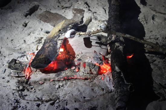 After the wonderful diner, the drinks appear. We gather at the several camp fires located on the beach and have a glass of locally brewed beer. Then one of the happy campers points out to me that someone has marshmallows. Ufff… bad idea to mention that to me. I will find out who!