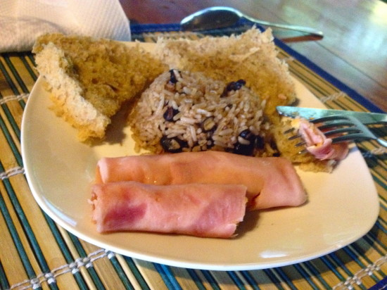 The breakfast is pretty good. From fruits to eggs to pancakes. To be quite frank I wasn’t very thrilled with the lunch and dinner being served at the restaurant due to small proportions. However, the lunch for take-away during the tour was pretty good. The day before the Corcovado tour the people from tent camp asked me which kind of sandwich I wanted to bring along. I could choose between ham and cheese, tuna or peanut butter for two sandwiches and also got a peeled orange, some cookies and a bottle of water in my lunch bag.