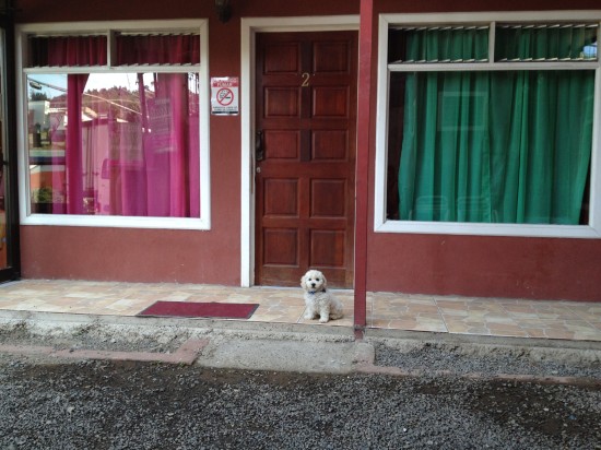 When I reach the Arenal port another van is waiting for everyone who was on the boat and asks us where we want to be dropped off. I booked a night at Gringo Pete after someone’s recommendation, so that’s where I will be heading to. As soon as I arrive I doubt if this is the right place for me. There is absolutely nobody besides the sleeping receptionist who for some reason locks himself up in the reception with a closed curtain in front of the little window. I get a room, a big room, where I am all by myself. Well, that’s not so bad, I could use the privacy for once, but for some reason there’s a strange ambiance in this place. Anyhow, I decide to stay due to the ridiculously cheap rate. Only 5 dollar!