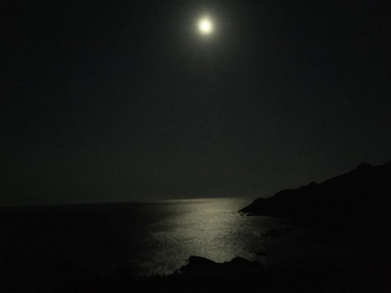 We leave the restaurant and drive up to the valley. The road has a small parking on the side and a walking path leads us down to the middle of the valley. The light of the full moon leads us to the stones and as we get closer and closer we start realizing that the stones are surrounded with thorny bushes. Shit! How on earth are we going to get close enough to the stone? We are wearing simple clothes and I did not even bother to change my flip flops for normal shoes, so it seems unlikely that we can manage to reach the one stone we really want.