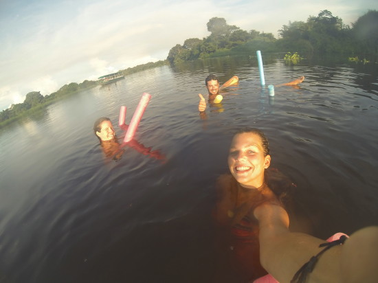 You, the swamp, the Piranhas, the Caimans around you… sounds a bit weird that I jumped in when I think about it like that. However the experience was quite a thrill! I floated with the churros and swam with the French couple in the middle of the river until we reached the lodge again. The strong current brings you back by itself, so it was not really a hard exercise. Sometimes the leaves or the roots of the water plants would touch us and we would get a bit scared thinking a big Piranha has just past us, but it seems that these carnivore fish only attack once they see blood. We left the river and lived happily ever after with still all of our body parts.