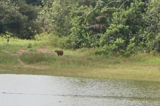 With a long piece of bamboo holding a cord and a hook attached to it with a piece of cow-heart we tried to attract the Piranhas. We were making it a competition and said that whoever catches the first piranha must pay for the beer tonight. Guess what. The beers were on me. I caught this monstrous looking piranha and pretty soon after the first one I caught one more. Fishing never appealed to me before and I was doubting if I enjoyed catching a fish and bringing it back to the lodge so that later on we could eat it, but yes, in the evening I realized I did have fun fishing Piranhas and they do taste good!