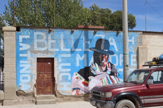 After about half an hour of train spotting we continue to a little market where the local salt handwork is being exhibited as well as the other local products of Uyuni.