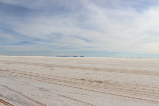 We see a big white area laying in front of us and the driver is making his way towards it. He has to cross the first part of the Salar to get to the best place for us, camera owners.