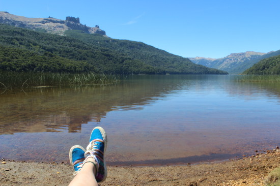 When I’m done with my lunch I make my way to the beach. I take my shoes of and my socks and enter the transparent waters of San Martin de los Andes. It’s soooo refreshing! I just love this feeling! Wish I had brought my bikini. The two hours at San Martin de los Andes pass very quickly and it’s already time to go back to Bariloche. I have been spending the entire day visiting so many places and seeing so much beautiful nature that I wish the day wouldn’t end. Time passes fast when you’re having fun!