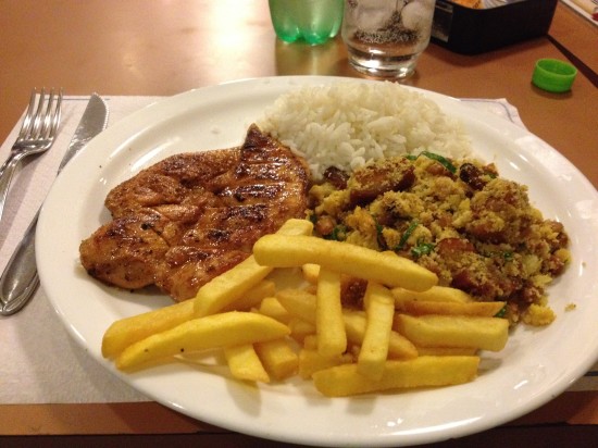 Typical Brazilian plate of chicken with tropeiro